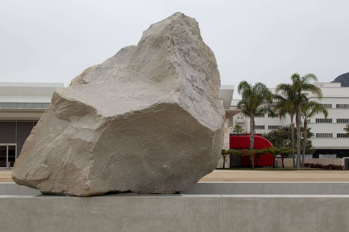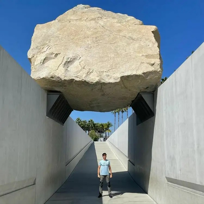 Завершает наш обзор «Левитирующая масса». Это памятник современного искусства, который находится в Лос-Анджелесе, США, на территории Художественного музея округа Лос-Анджелес.