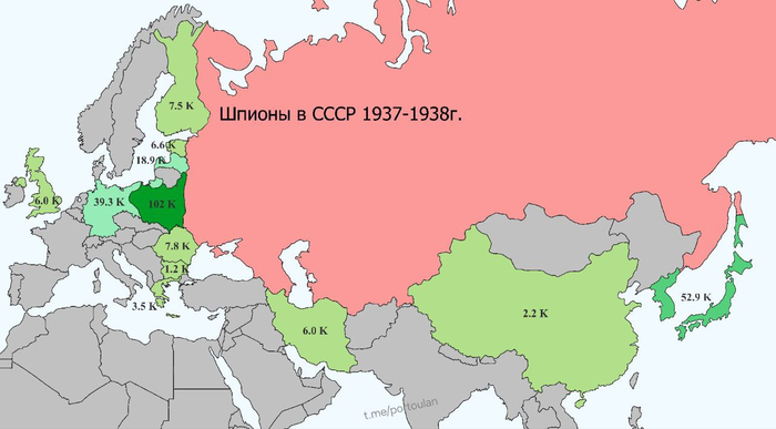 Созданные 7(20) декабря 1917г. советские органы госбезопасности наибольшего размаха в своей нелёгкой деятельности достигли в 1937-1938г. За эти два года НКВД вычислил целых 265 тыс. иностранных шпионов (~80% всех пойманных в СССР агентов других стран за всё время его существования).
