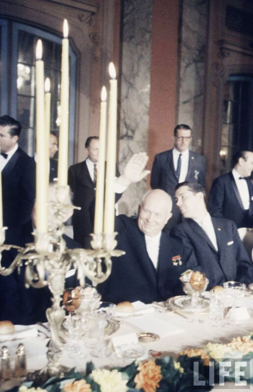 Эта фотография получилась случайно -- фотограф агентства "Magnum" Берт Глинн немного опоздал и оказался за спиной Хрущева.