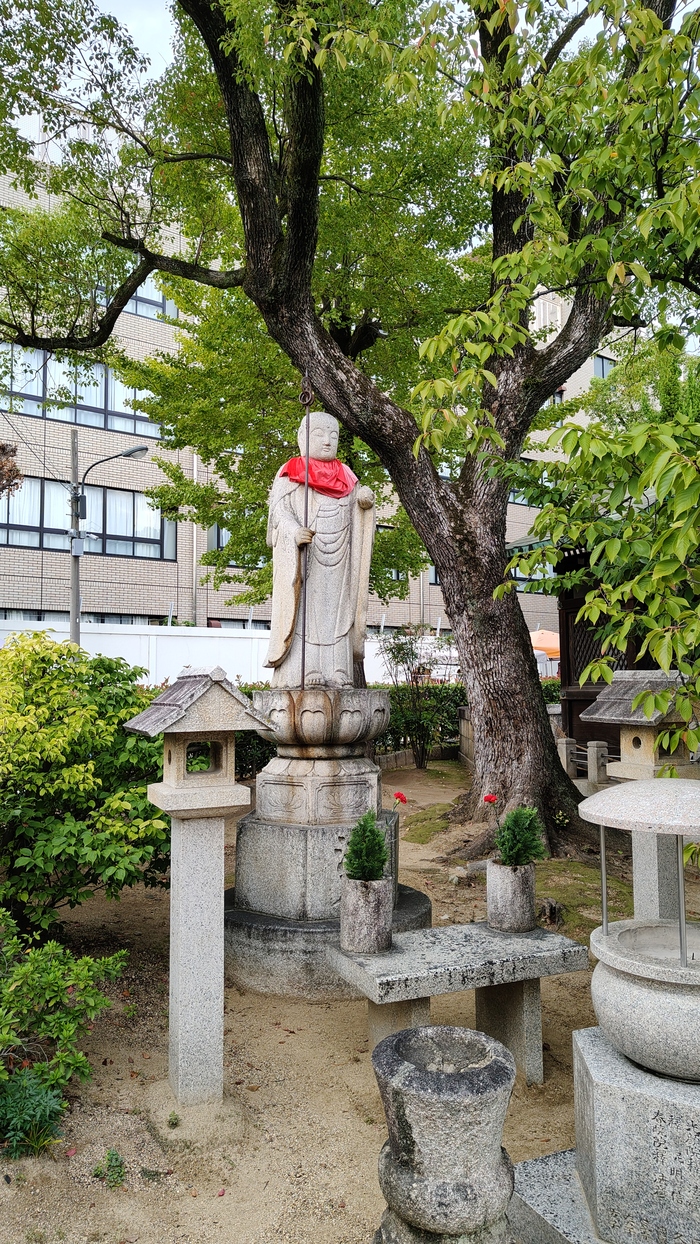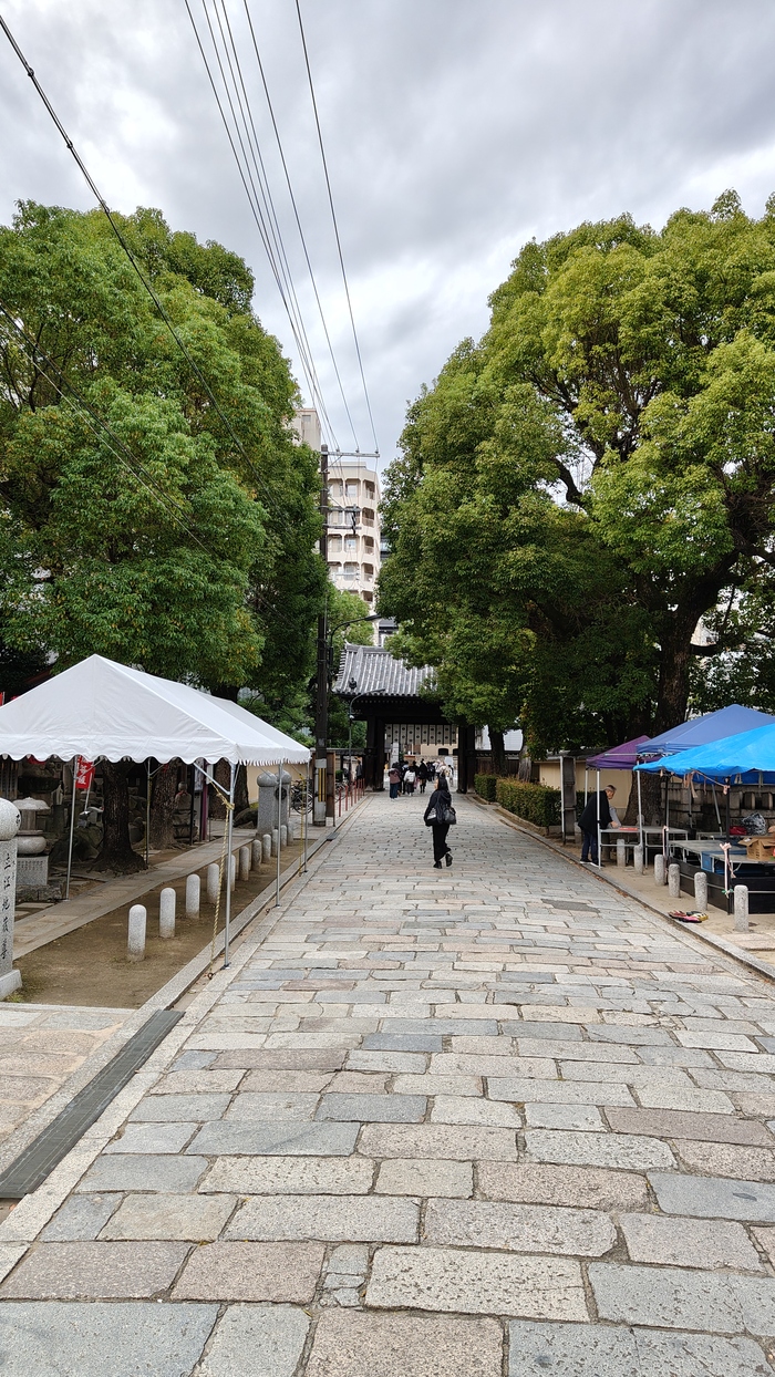 Народу было много хотя я и пришёл почти под закрытие. Храм один из центровых в Осаке.