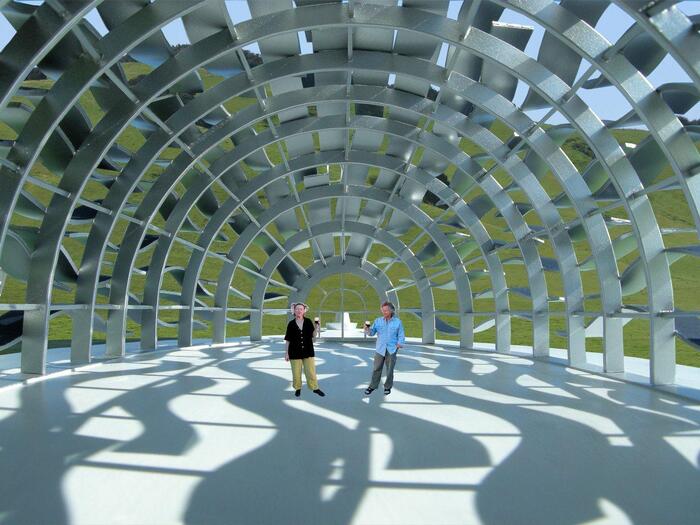 Павильон «реагирует» на погоду — стеклянные панели открываются при жаре и закрываются при ветре. А вечером, когда солнце садится, здание продолжает жить — благодаря энергии, которую оно само создало. Solar Winds — это символ того, как архитектура может стать частью экосистемы, а не потребителем ресурсов.