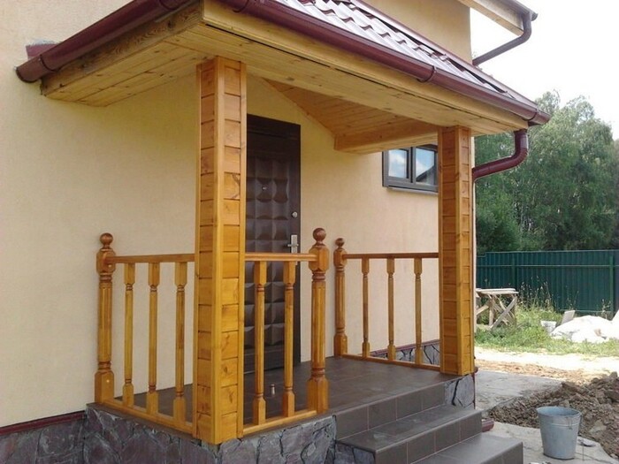 Если вход в дом у вас выполнен в виде террасы и накрыт односкатной крышей, вот так: