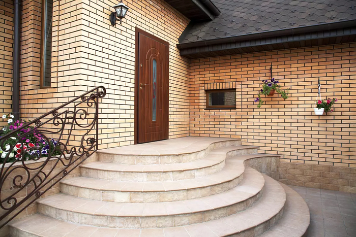 Мы защитим входную дверь! А ступеньки? Да, подумаешь, фигня какая. Пусть мокнут и засыпаются снегом.