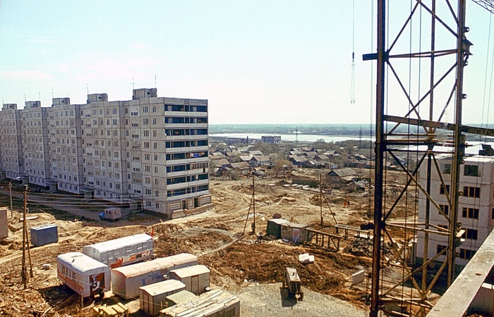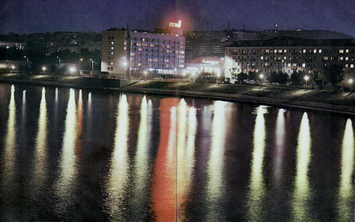Новое здание, где располагался "Якорь". Тогда тут разместили "Палас-отель", 1995. С сайта www.pastvu.com.