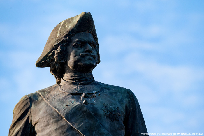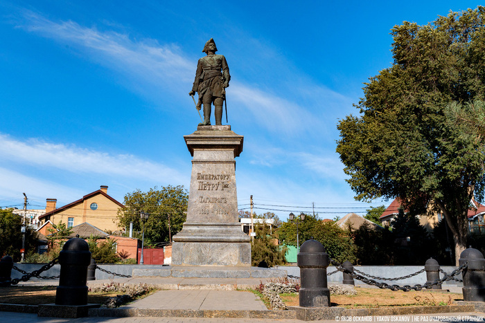 Мало кто знает, что архангельская скульптура является копией высотой 2,5 м. Оригинал же, отлитый под руководством автора, Марка Матвеевича Антокольского, стоит в Таганроге (на фото ниже) и его высота 3,5 м.