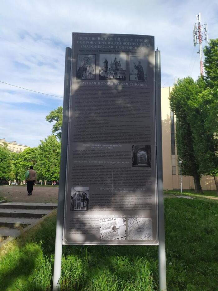 И вот проходя тут на днях через парк, обратил внимание, что на информационный стенд, поверх информации о храме, кто-то прилепил проект восстановления церкви.