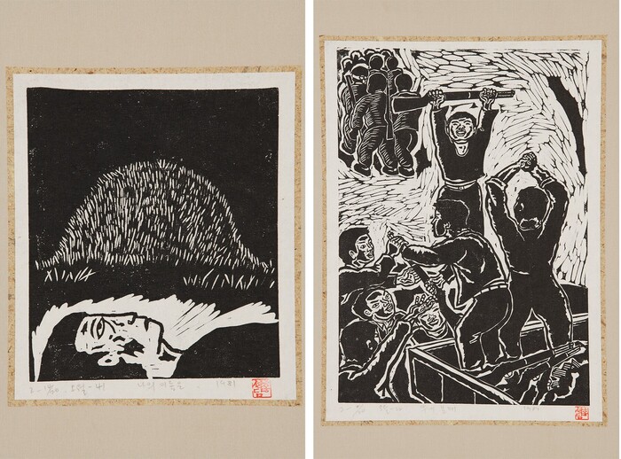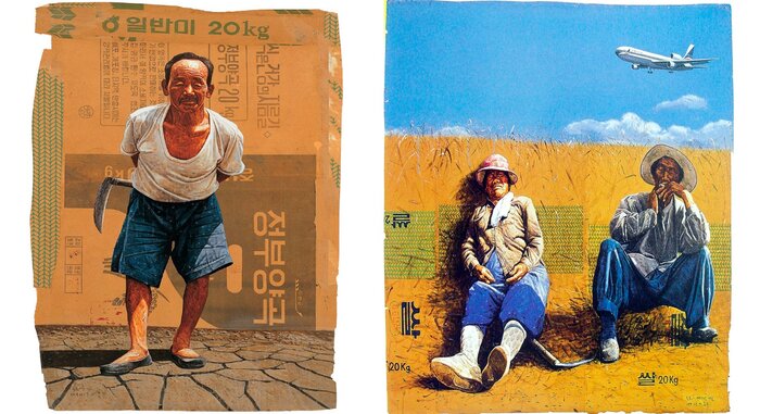 Этот художник более позднего периода минчжун мисуля открыто выражал протесты в своих работах, практически не используя метафор или абстракций. Он использовал коллажную технику, чтобы добавить реалистичности — чтобы зритель узнавал себя и осознавал социальные проблемы.