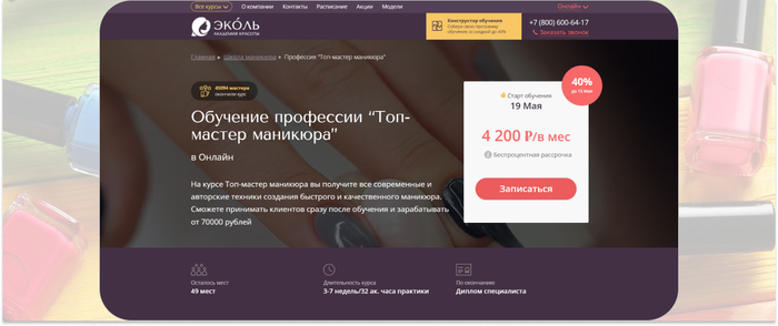 «Топ-мастер маникюра» от Эколь — курс, на котором предлагают индивидуальный план обучения для роста квалификации от специалистов
