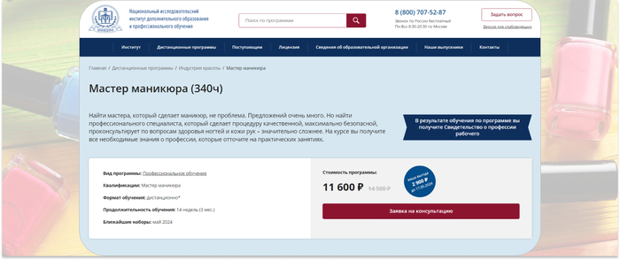 «Мастер маникюра» от НИИДПО — курс с профессиональным обучением с доступом к материалам в любое время