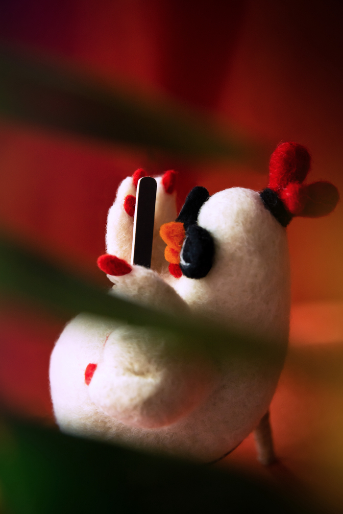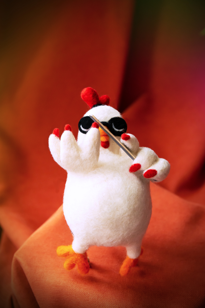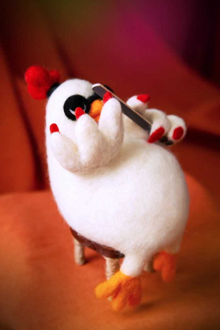 Курица не жмурится (потому что в очках) и ПЕРОфессионально маникюрится )