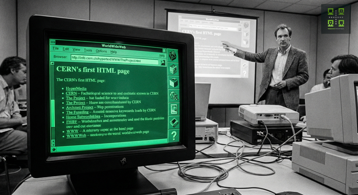 🖥 Тим Бернерс-Ли на внутренней конференции CERN показал первый браузер WorldWideWeb (позже Nexus) - одновременно редактор HTML и просмотрщик. WYSIWYG-интерфейс позволял рисовать страницы как в Word, делая веб более доступным.