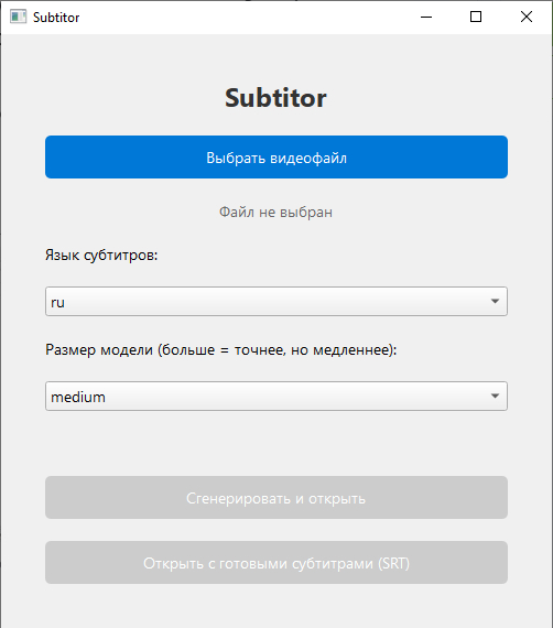 Запускаете Subtitor.exe. Выбираете видеофайл на вашем устройстве