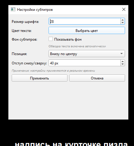 Не пугайтесь только. Сразу после обработки откроется плеер с настройками сабов и возможностью вшить субтитры в видео и сохранить на устройство.