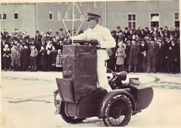 Немцы, как всегда поступили очень прагматично. Мотоциклы не попадали под запрет, наложенный на Германию и классическая схема простых и одновременно суровых мотоциклов оказалось наиболее успешной и ее не чурались копировать будущие противники Германии. Однако нацистские вожди любили попиздеть, это ведь не мешки ворочать и для них разработали мототрибуну с матюгальником.