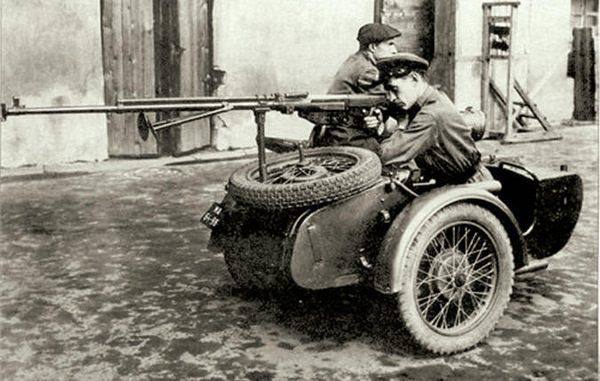 Ну и напоследок, разрушим стереотип, популярный в советском кинематографе, где все мотоциклетные роты немцев поголовно вооружены пулеметом на каждый мотоцикл. На самом деле, картина была с точностью наоборот. По штату, немецкая мотоциклетная рота имела на вооружении столько же пулеметов, сколько и обычная пехотная. А вот советской мотороте, полагался пулемет на каждый мотоцикл.