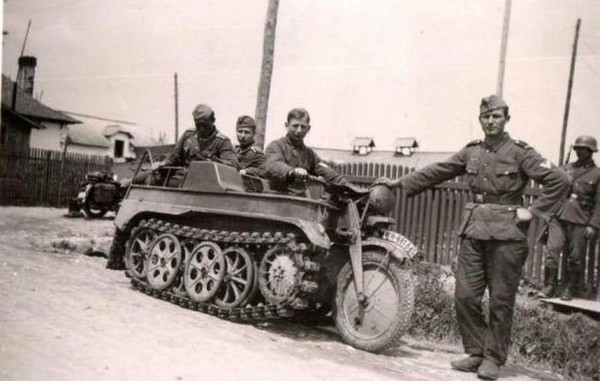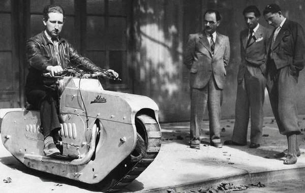 Были и вполне удачные гибриды танка и мотоцикла. Вот, в попытке наебать русское бездорожье, немцы сделали популярную модель, дитя любви мотоцикла БМВ с танком Пантера - "Кеттнкрад". Бездорожье брал неплохо, но переворачивался на уклонах тоже весьма неплохо.
