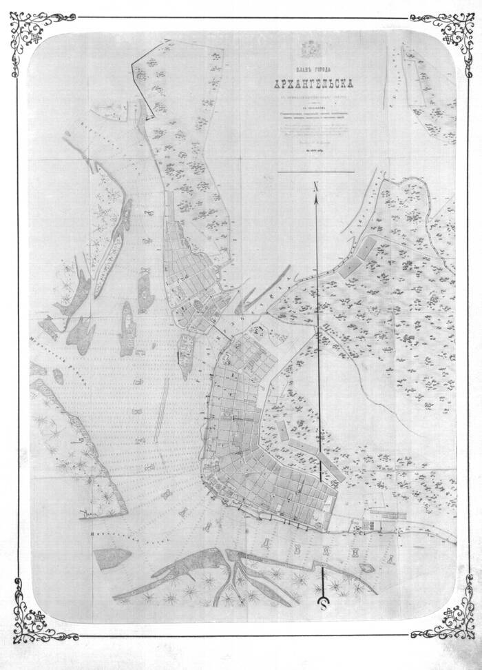 Заканчивая историческое описание зданий Архангельска, я считаю долгом дополнить его необходимыми сведениями о настоящем его состоянии, а также прилагаю план города с вновь проектируемыми улицами, которых на моем плане нет. Закрытие порта в 1862 году хотя и вызвало уменьшение населения, но промышленная деятельность города, увеличиваясь с каждым годом больше и больше, быстро увеличила народонаселение. В 1901 году жителей в Архангельске было 22.621 человек, из них 12.052 мужчин и 10.569 женщин. В настоящее время в Архангельске насчитывается до 20 заводов, главные из них лесопильные.