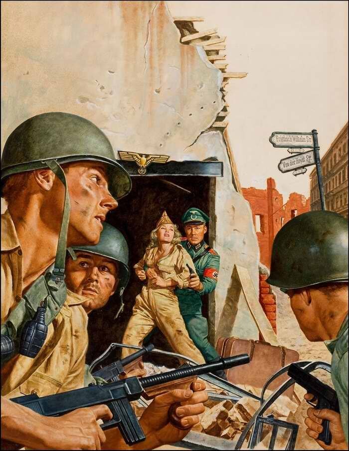 Позвольте, мадмазель, донести ваш чемодан. Нет, я настаиваю... Советский офицер внешне грубоват и суров, но настоящий джентльмен.
