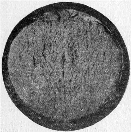 Рвотины образуются при закаливании и потому, составляя сами по себе важный порок оружия, вместе с тем выражают дурную, неравномерную закалку. Трещины бывают еще в кованцах, но от закалки они становятся явственнее, ибо при этом размеры их увеличиваются в ширину.