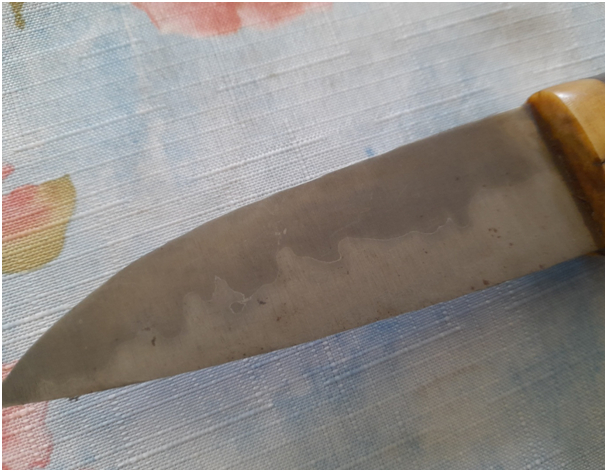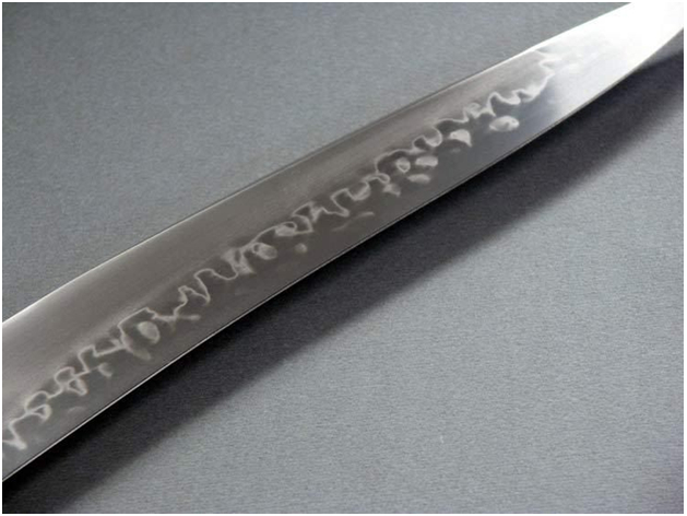 Чтобы при ударе лезвие не откололось по этой структуре, линию хамон приходится делать извилистой.