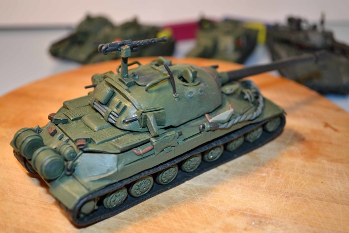 ИС-7 — венец эволюции тяжелых танков. Создан для борьбы с немецким сверхтяжелым танком «Маус». Имел неповторимую огневую мощь — 130-мм пушку со стабилизацией прицела и механизмом заряжания, а также восемь пулемётов. По скорости вне дорог ИС-7 превосходил средние танки. Броню ИС-7 не пробивала и 128-мм пушка «Мауса», даже в упор!