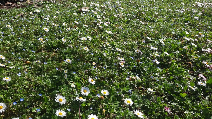 В Англии тоже цветут.