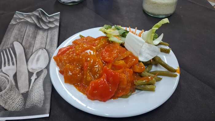 Сегодня по всей Паданской равнине туман и дождь, погода на редкость ужасная и депрессивная. Я остановился на ланч где то между Брешией и Пармой в маленьком поселке, в этом районе нет туристических мест и люди живут сельским хозяйством. Цена на бизнес ланч поэтому ниже обычной - 13 евро, вместо 15. Мне понравилось, было очень вкусно. Спагетти, мясо и гарнир набрал сам, что то типа лечо. Фото прилагаются