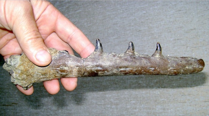 на фото Фрагмент челюсти небольшого мозазавра из Пензенской области. Фото из архива М. С. Архангельский