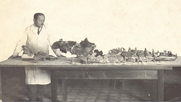 Нижняя челюсть мозазавра, добытого М. А. Веденяпиным. Фото из архива Пензенского краеведческого музея