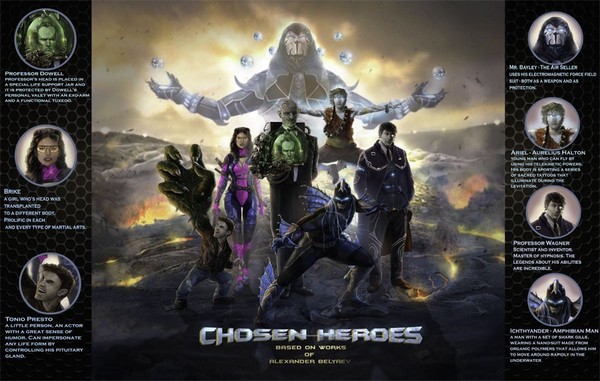 Но вот пару недель назад в сети появилась художественная разработка, судя по которой, из романов Беляева решили сделать собственную фантастическую вселенную в жанре кинокомикса - персонажи представлены в образах супергероев.