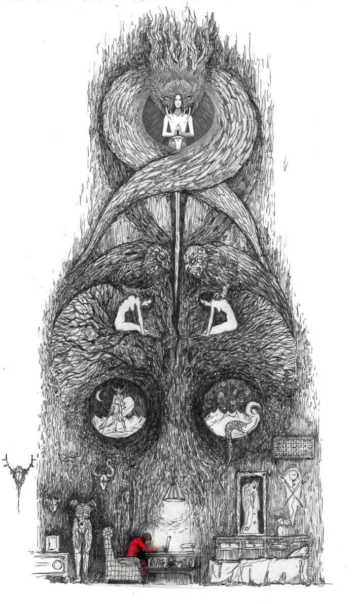 Левша сел за стол и открыл свой походный чемодан. Внутри лежала ритуальная маска “Паучий Поцелуй”, “голодная” чаша, горелка, флакон спирта, стеклянные колбы, пачка столичных денег, чёрный бархатный футляр и набор причудливых инструментов, похожих не то на хирургические приборы, не то на воровские отмычки. Он открыл одну из колб, выпил прозрачную жидкость, поморщился и занюхал пробкой. Посидев с минуту без движения, Левша выпрямился насколько позволяла горбатая спина. Насвистывая лёгкую мелодию, положил на стол руку с походным браслетом. На обратной стороне имелась пластина, державшаяся на дюжине винтиков. Вооружившись маленькой отвёрткой, Левша снял пластину. Под ней оказались прозрачные трубки, по которым пульсировала кровь. Трубки соединялись в небольшом серебристом цилиндре, издававшем едва уловимый звон.