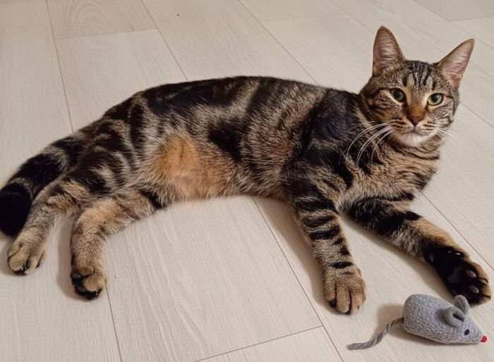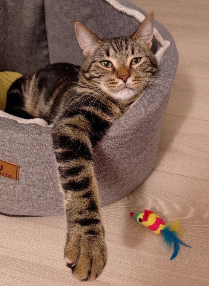 А ещё у Лео наконец-то появились игрушки. Малыш с удовольствием гоняет их, а когда засыпает, обнимает лапками, как друга. Или как маму.