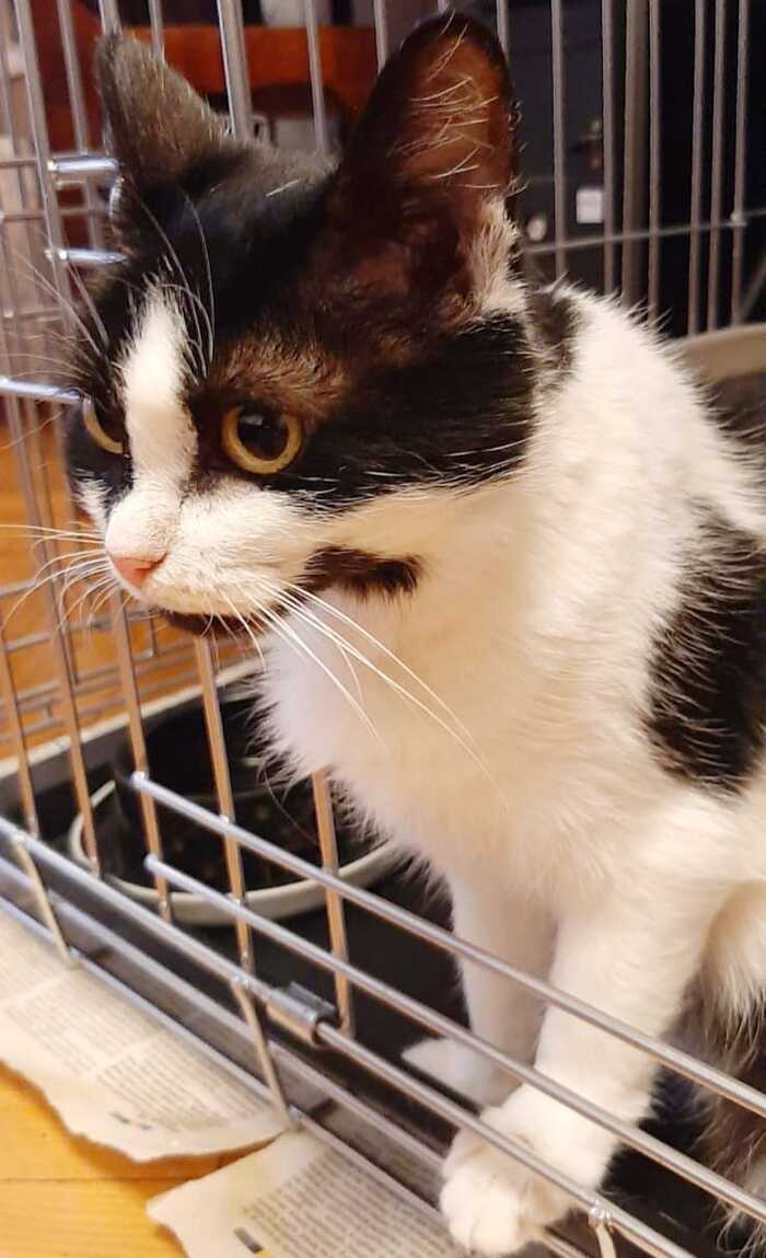 Девочке нашли передержку. К сожалению, это только клетка, но хотя бы в тёплом помещении.