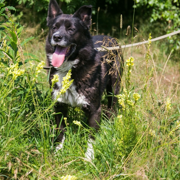 Валёк очень добрый пес, скромный, ненавязчивый. Его радость при виде человека – это нечто невероятное)