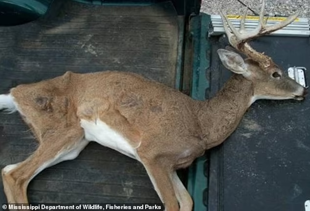 Хроническая истощающая болезнь (ХИБ/CWD) — это заболевание, передающееся прионами, похожее на «коровье бешенство», которое может вызывать потерю веса, потерю координации и другие, в конечном итоге, фатальные неврологические симптомы у оленей. Вверху: олень, убитый CWD, как опознали представители дикой природы штата Миссисипи.
