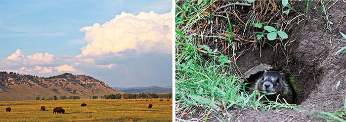 Привлекает туристов и то, что, прогуливаясь по парку и любуясь его невероятными красотами, можно встретить оленя или увидеть невозмутимо дремлющего бизона. Животный мир Йеллоустоуна очень богат, здесь живут волки, койоты, бурые и черные медведи, даже гризли, рыси и т. д. В степной части парка встречаются бизоны. Огромные животные здесь спокойны, ведут себя, как хозяева, неспешно переходят дороги, приходят в поселки.