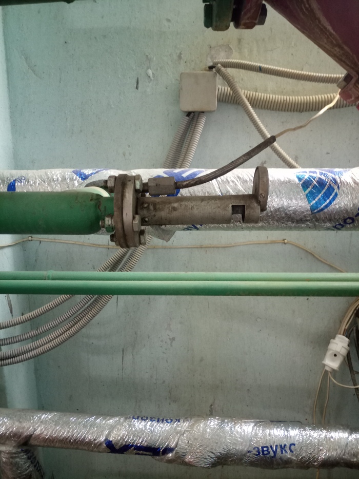 Остался от старых котлов. Термостат сильфонный, кажись. Установлен на подаче гвс