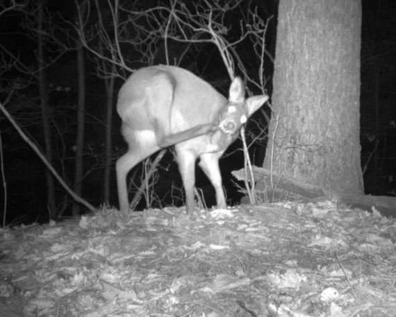 Спокойная кабарга беззаботно ищет себе корм, а минуту спустя в кадре появляется рысь, идущая по следу зверя!