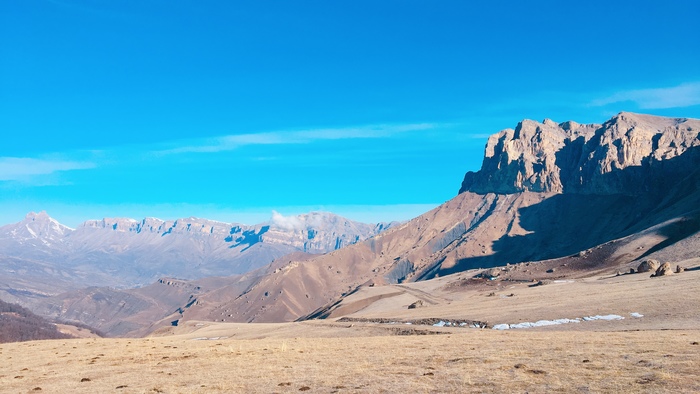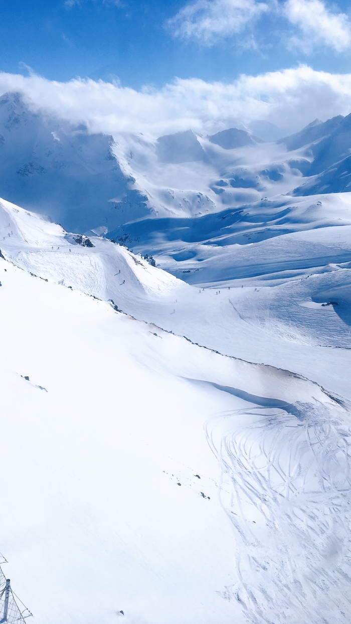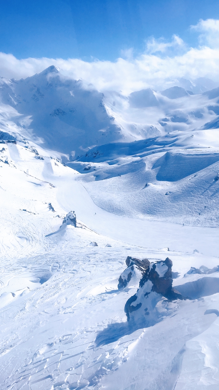 Ехать довольно долго, поэтому успеваешь все рассмотреть, покайфовать. Сама атмосфера очень располагающая — медленное движение канатки, слегка покачивается кресло, вдалеке мелкие фигурки людей. Где-то едешь невысоко над землей, где-то поднимаешься на приличное расстояние. Но очень холодно даже летом, а уж в мое прошлое путешествие на Эльбрус в конце октября замерзла невероятно, как сейчас помню — едешь чуть ли не вдвоем с сестрой на всей канатке, сидишь на крошечной табуретке с металлическими перекладинами, обдуваемая всеми ветрами. Но, при этом осенью на Эльбрусе было красивее, чем летом.