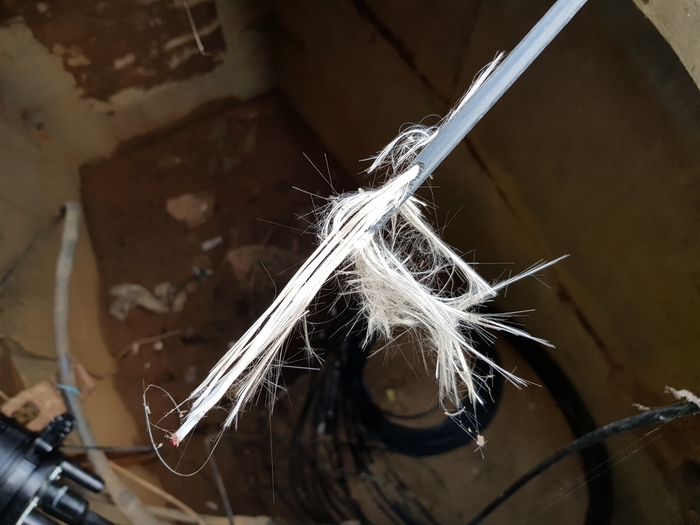 11 июля поступила жалоба - нет связи. Приезжаю и вижу, что два многомодовых кабеля перегрыз кто-то... 24 волокна в обрыве...