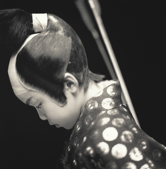 Обесцвеченные волосы знак бунтарства, по отношению к обществу. Японцы в основной массе темноволосые. Выбор парика в театре кабуки создает оттенок образа героя.
