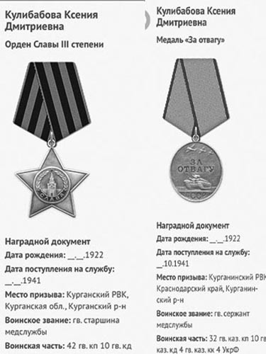 Любил я втихаря девчушку, по имени Ксения (Кулибабова Ксения Дмитриевна – прим.автора), подкладывал ей под походную палатку конфетки, цветочки полевые, стихи ей писал ... было ей на время того боя лет двадцать, но выглядела лет на семнадцать, – хрупкая очень с виду, и вот вижу, что она скачет правее от меня, поводья опущены, и на ходу из ППШ короткими очередями поливает фашистов налево и направо ... дошла она до Берлина, и в том бою выжила, но моя скромность не дала мне с ней тогда поближе познакомиться ... Но я отыскал Ксению, после войны ... жена она мне теперь ...