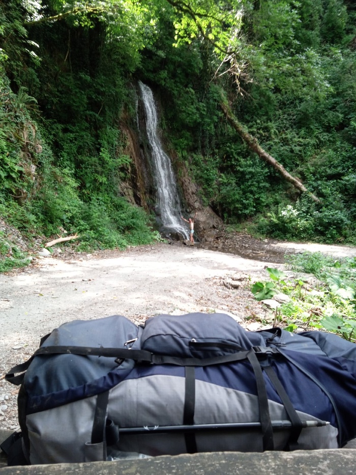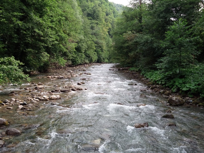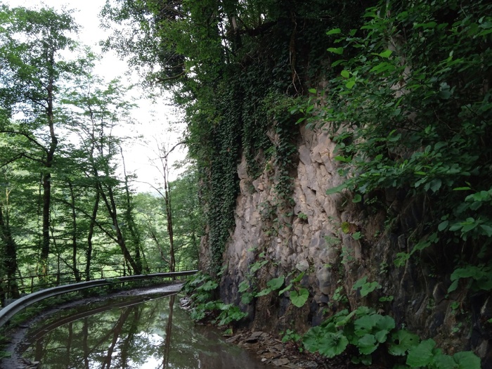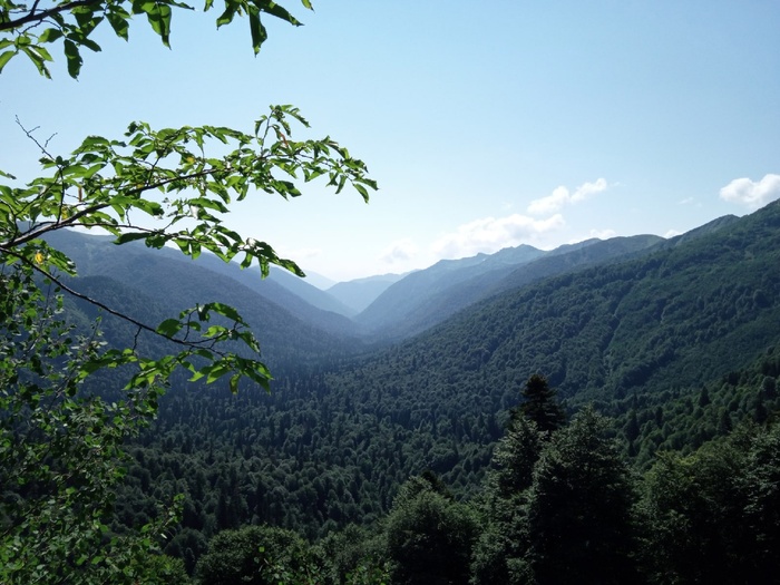 Вышли на Армянский перевал. Сначала думал причем тут армяне. Потом оказалось что в горах в окрестностях Сочи живёт большая армянская диаспора. И греческая кстати тоже (про греческую я знал раньше из советской книги про регион, про армянскую нам рассказали на пути в город). И те и другие по разным причинам (часто очень драматичным) и в разные времена перебирались из Турции в Россиию. И так с того времени и живут. Поэтому тут не шаверма или шаурма, а сувлаки.