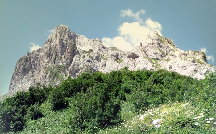 Оштен начал прятаться в облаках, но всё равно виден с Абадзешского перевала (когда шли в ту сторону - всё было в облаках)