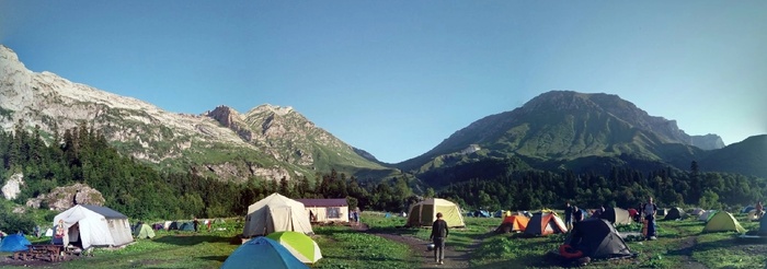 Палатку поставили близ Инструкторской щели (одно из мест, где можно разместиться, дальше либо Приют Фишт, либо Приют на реке Цица)