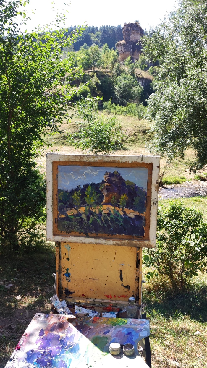 7 Verkhoglaz Пленэр в Ольховском ущелье 2 года назад Лермонтовская скала. Этюд30х40 см. картон, масло. Показать полностью 2 [моё] Живопись Картина Пейзаж Арт Творчество Искусство Масло Холст Этюд Пленэр Художник Кавказ Кисловодск Длиннопост Ещё 0