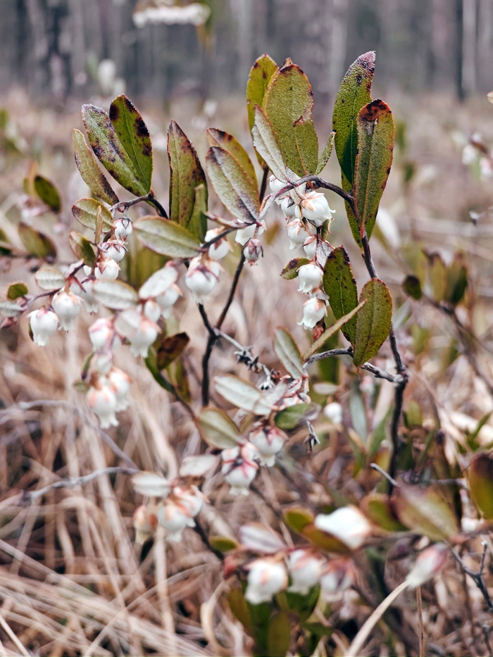 Это вечнозеленый кустарничек из семейства вересковых с белыми колокольчатыми цветами. Цветки собраны в соцветие, и расположены с одной стороны оси. Такой вид соцветия ботаники называют "однобокой кистью".