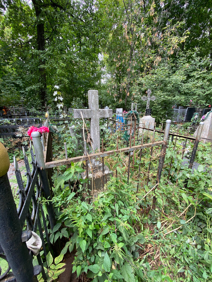 Могила откровенно заброшена. Скромный памятник весь покрыт крапивой. Я ее немножко утоптал.