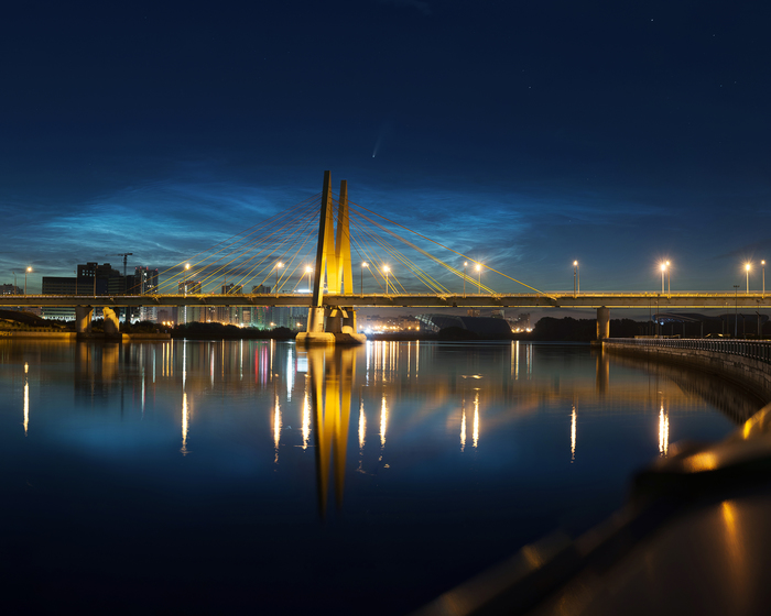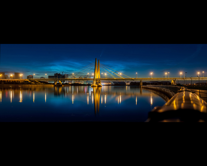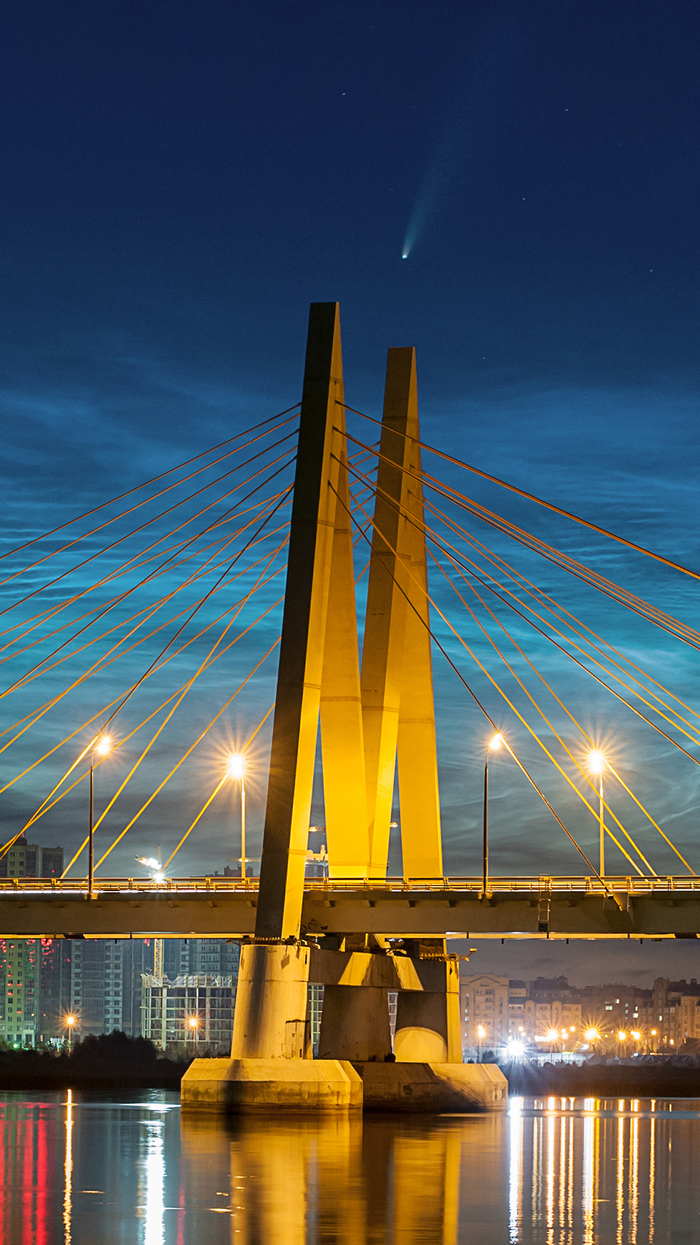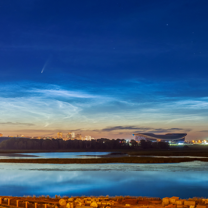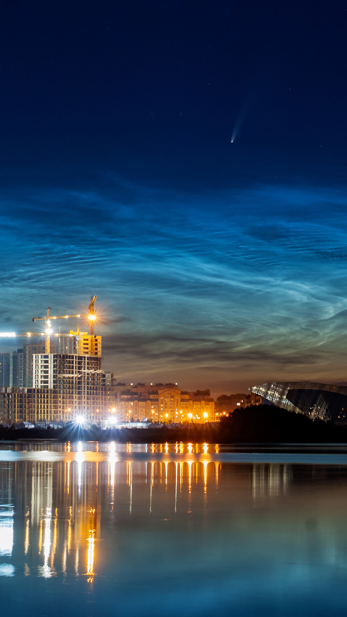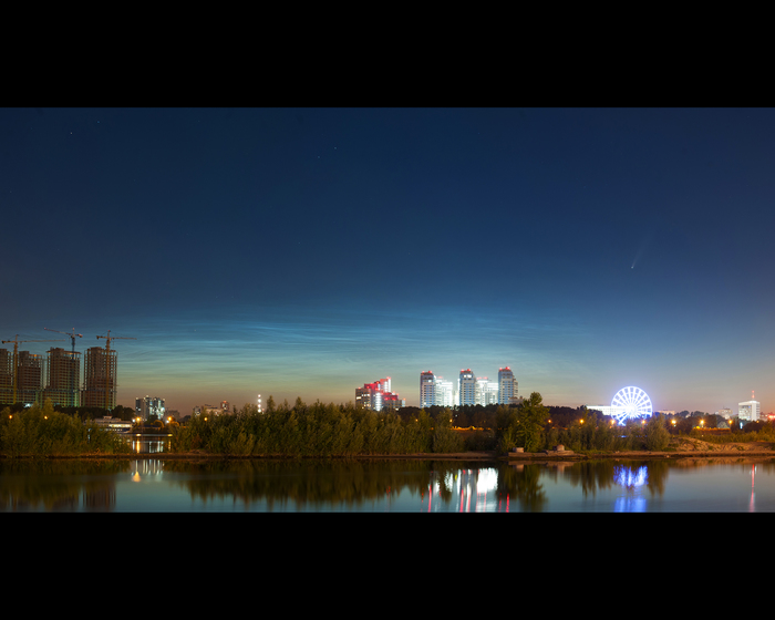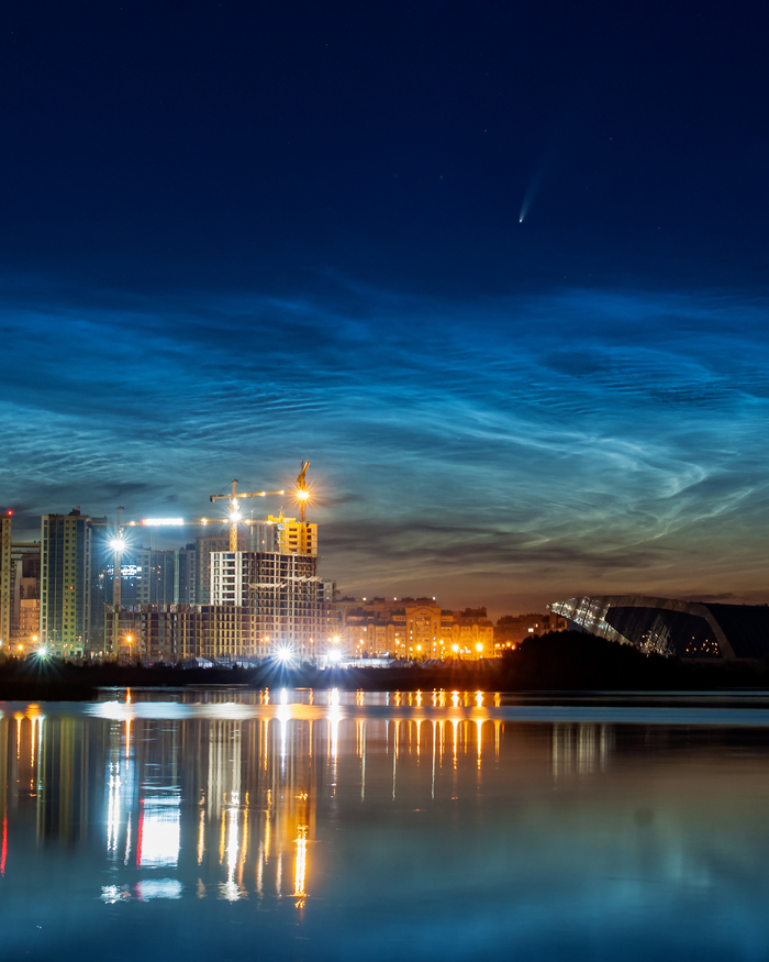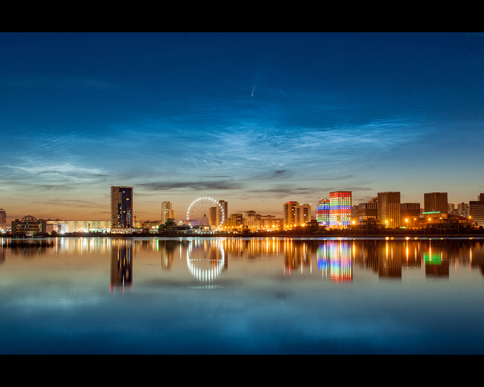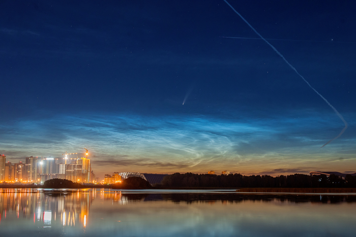 Совершенно случайно увидела в бинокль комету на фоне серебряных облаков.