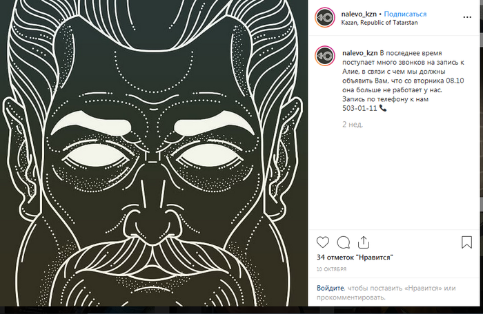 Компания (Барбершоп "Налево", г. Казань) в которой работала блогерша после того как народ начал активно ее минусить, типа "уволила" мадам на волне негатива, после чего появился пост "Блогершу, облившую охранника из перцового баллончика всё-таки уволили."